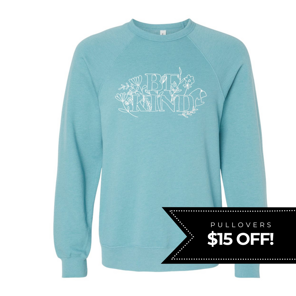 I'm so excited to release my "Be Kind" design in a soft and stylish pullover! The "Be Kind" design is one continuous line, inspire by my "Be Kind" vinyl sticker. The design is embroidered on the front of the pullover and is ready to be worn dressed up or dressed down. The pullover has stretch and is the coziest with its fleece-lined inside.