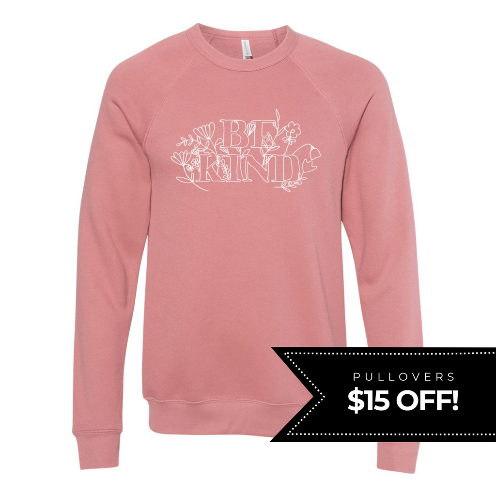 I'm so excited to release my "Be Kind" design in a soft and stylish pullover! The "Be Kind" design is one continuous line, inspire by my "Be Kind" vinyl sticker. The design is embroidered on the front of the pullover and is ready to be worn dressed up or dressed down. The pullover has stretch and is the coziest with its fleece-lined inside.